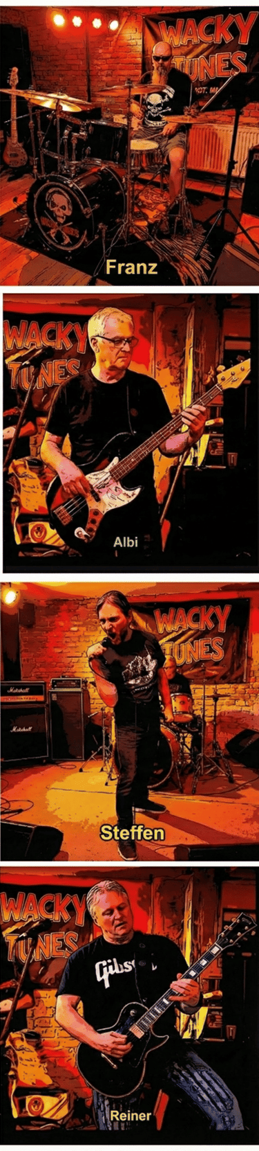 Wir sind Wacky Tunes, eine Band mit Leidenschaft für Live-Coverrock. Wir, das sind Franz, Albi, Steffen und Reiner, und mit voller Leidenschaft sorgen wir für unvergessliche Erlebnisse, die unsere Fans begeistern.