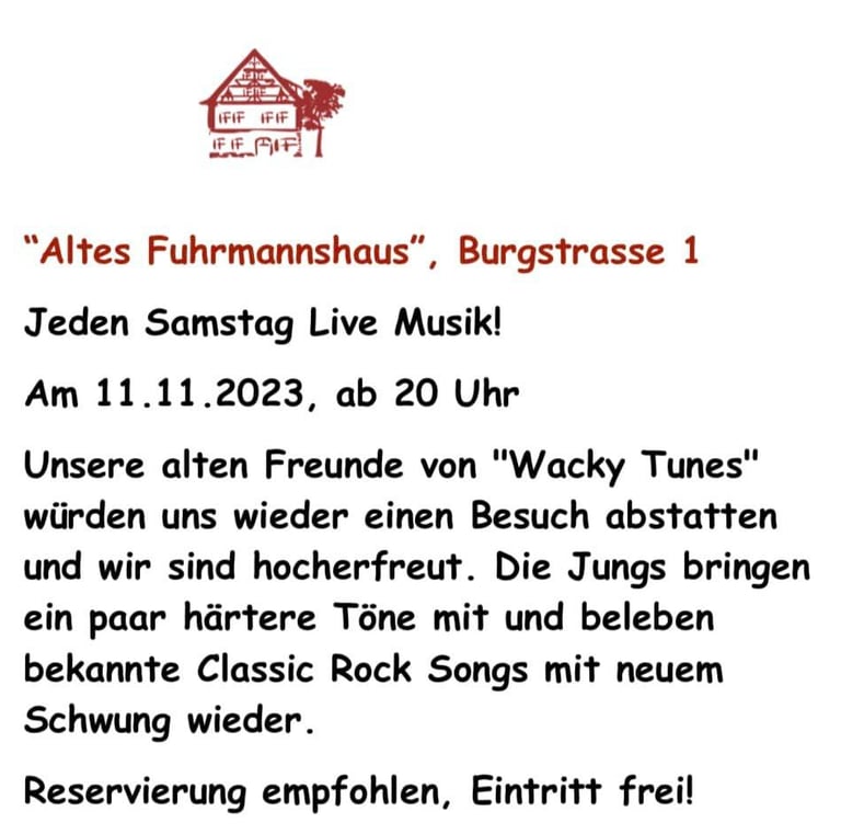 Sichern Sie sich jetzt Ihre Plätze für unsere legendären Live-Coverrock-Konzerte mit Wacky Tunes!